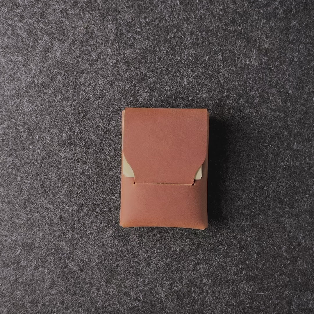 This slim wallet is made of premium quality Vegetable-Tanned Crazy Horse-style leather from Italy. It can hold up to 15 cards in the main compartment and features a pocket on the back for easy access to your cards or cash. This wallet is designed to offer more space while maintaining the sleek, premium quality you love. Its slim profile does not include any buttons or rivets, making it simple, and reliable.