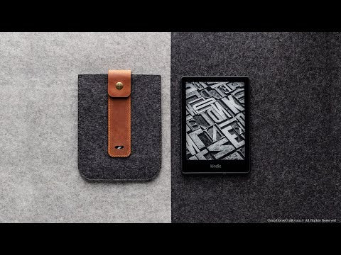 This handmade felt sleeve is designed to provide a snug fit, a secure hold, and a stylish look for your Kindle device. It's made of 100% Wool Felt and Vegetable-Tanned leather. 3 mm wool felt will protect the screen from scratches while the Brass button snap closure will save your Kindle from falling out.